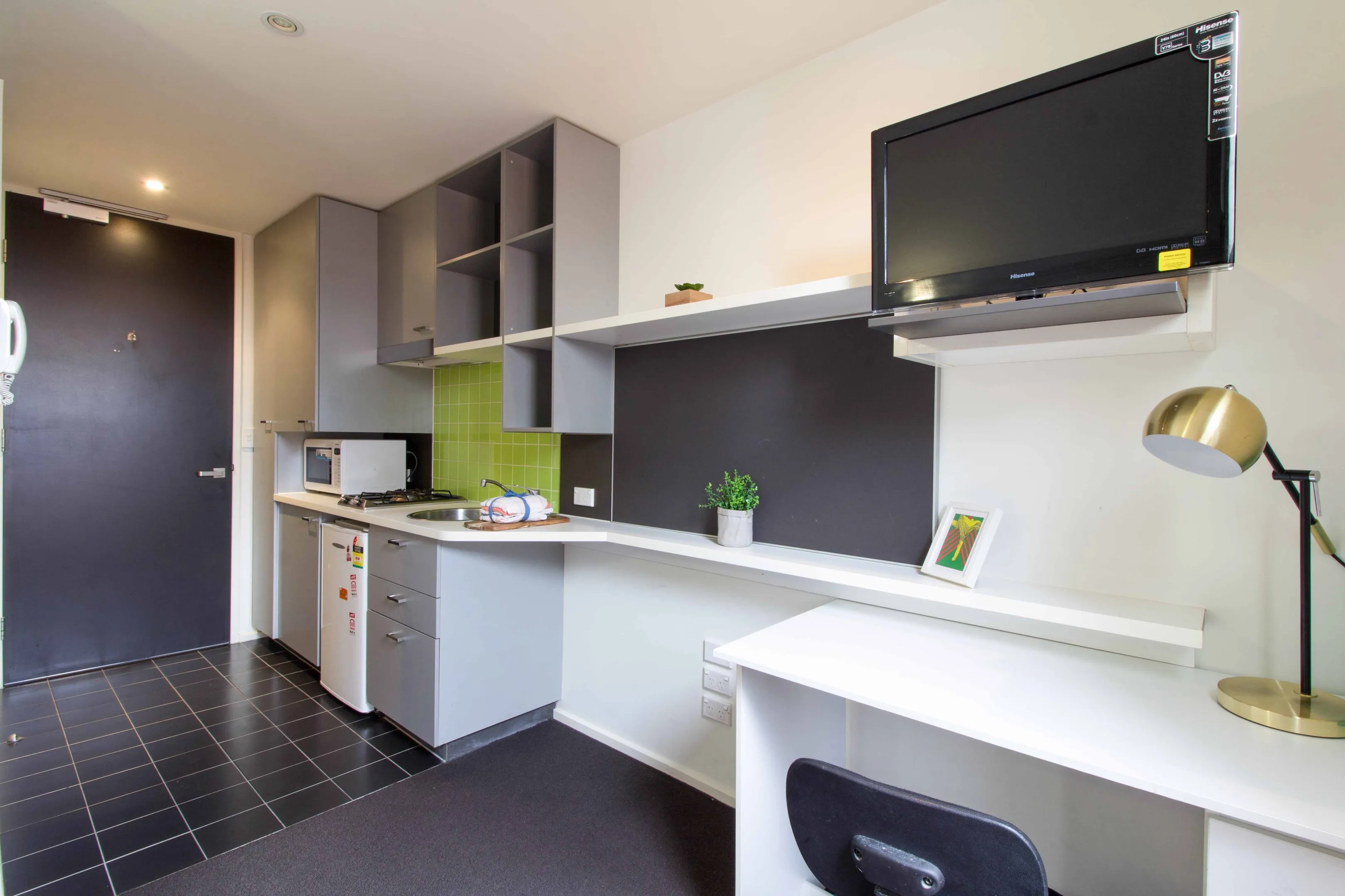 - A fully equipped, modern kitchenette for preparing quick and healthy meals.